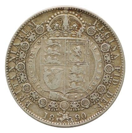 These half crowns are made of 0.925 silver, issued from 1887 until 1892 and feature a crowned shield and garter and collar reverse.